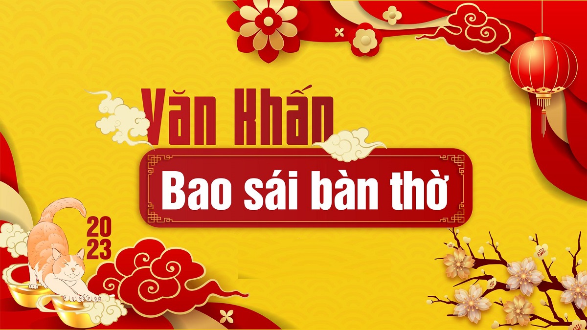 Hôm nay là ngày 23 tháng Chạp (hoặc 30 tháng Chạp… hoặc ngày nào đó vào cuối tháng), con xin phép được bao sái lại bàn thờ gia tiên (để cho sạch sẽ để tiễn năm cũ, đón năm mới tới (trường hợp dọn dẹp ban thờ cuối năm) – để sạch sẽ ban thờ cho việc thờ cúng được trang trọng, khang trang (trường hợp dọn dẹp ban thờ vào cuối tháng), mong chư vị Phật Thánh, các cụ gia tiên tiền tổ, bà tổ cô, ông mãnh, cô bé đỏ, cậu bé đỏ của họ… chấp thuận.